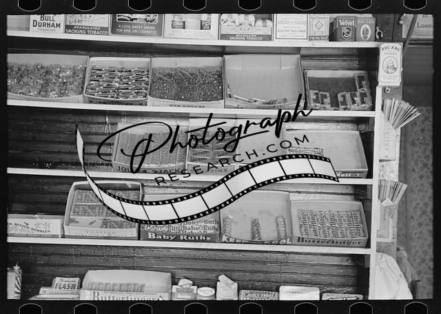 Display of candy in store,La Forge,Missouri,MO,Farm Security Administration,