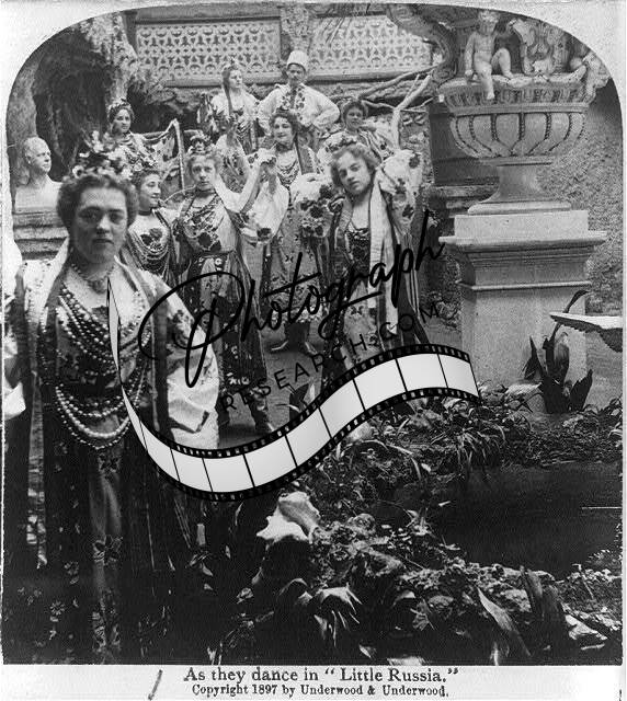 As they dance in 'Little Russia',Women,Ornate Dancing Costumes,Man,c1897