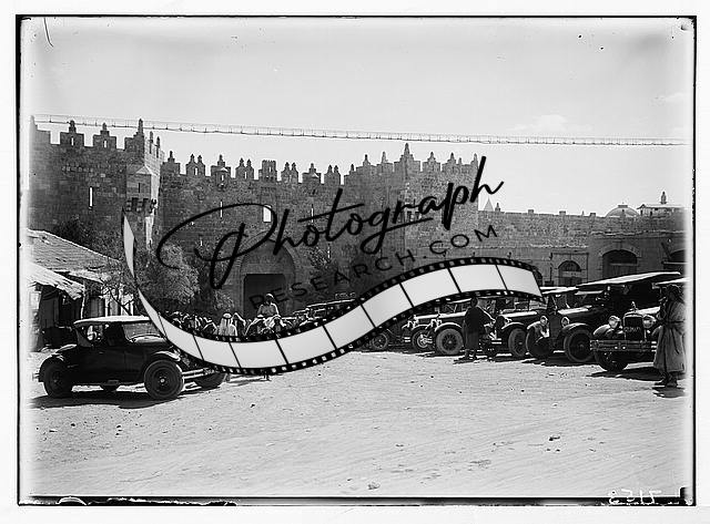Damascus Gate with rows of auto cars,Jerusalem,Israel,Middle East,1934-1939