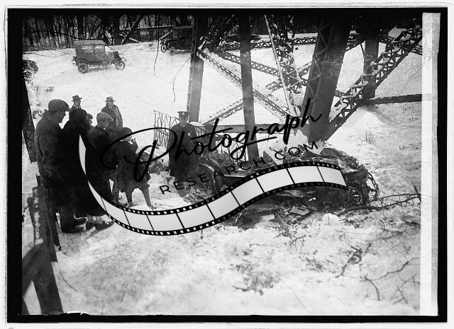 Auto wreck after 70 ft. drop from Calvert St. Bridge,Washington,DC,1926,1