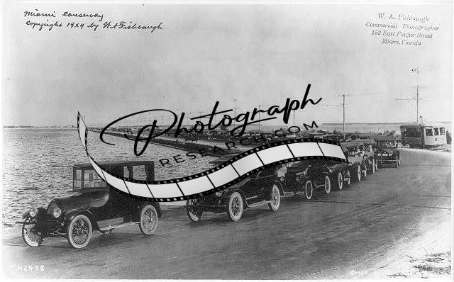 Automobile Traffic Jam on Causeway,Miami,Miami-Dade County,Florida,FL,c1924