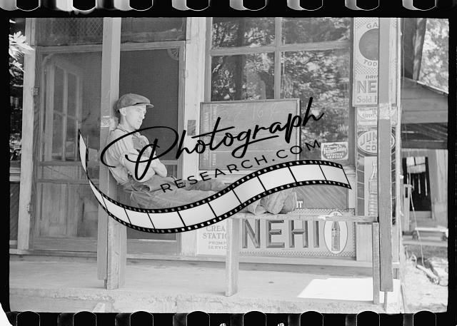 Resting in front of general store,Blankenship,Martin County,Indiana,IN,FSA