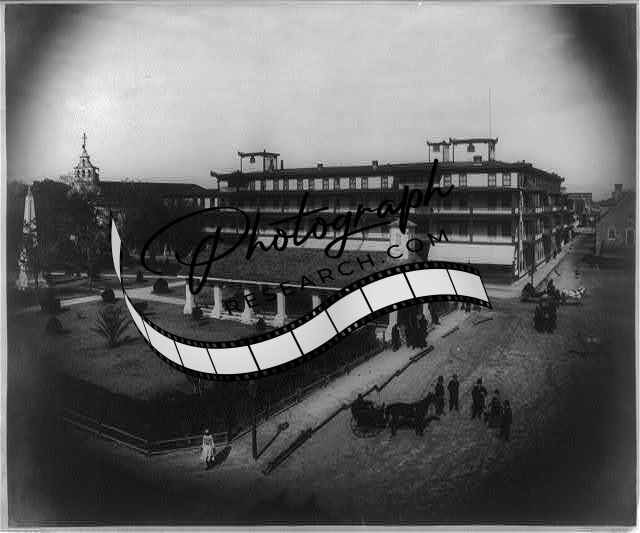 Plaza,buildings,crowds,horse drawn carriage,Saint Augustine,Florida,Barker,c1886