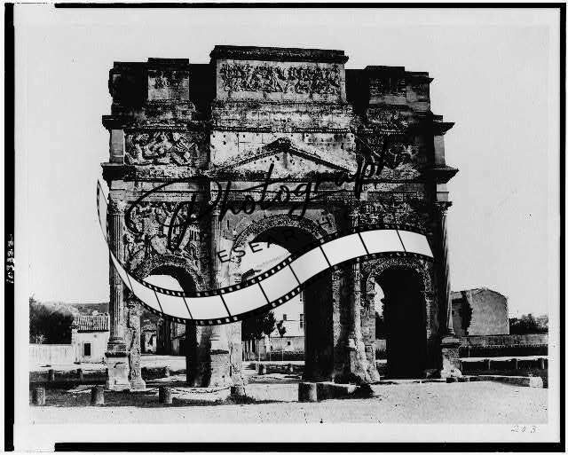 Arles,Roman arch,structures,stone,antiquities,relief sculptures,France,1860