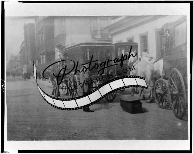 Horse-drawn hearses,front of funeral parlor,New York City?,NYC?,1908-1924