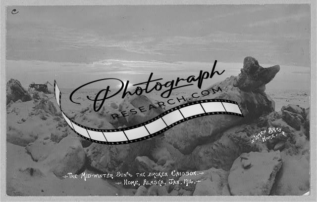Mid-winter sun,broken caisson,Nome,Alaska,AK,Snow,January 1916,United States