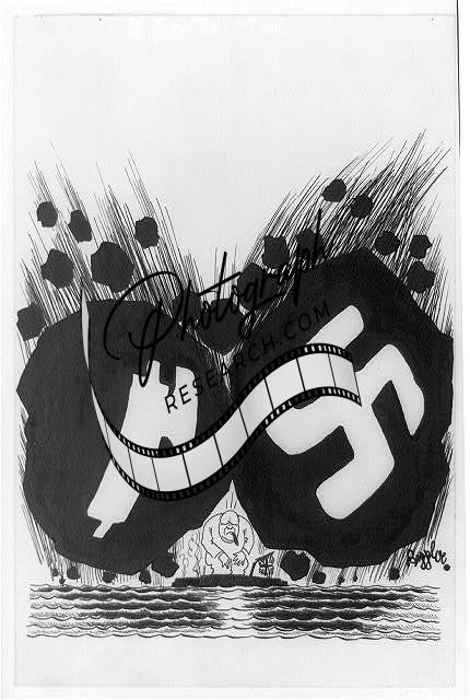 Axis bombs severing F.D.R. & Churchill's "hands across the sea"