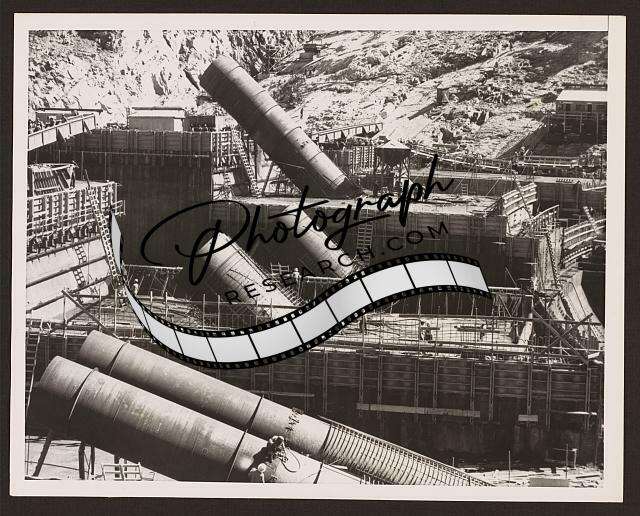 Ponderous pipes,Hungry Horse Dam,penstock,river,1950