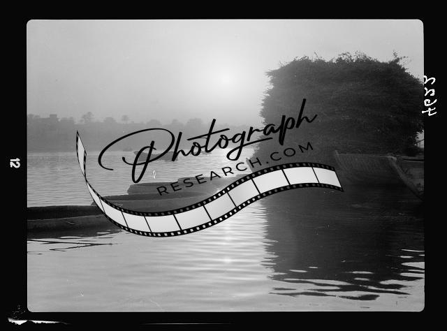 Title: Iraq. (Mesopotamia). Baghdad. River scenes on the Tigris. The Tigris. A sunset silhouette. A river boat with paddle wheel