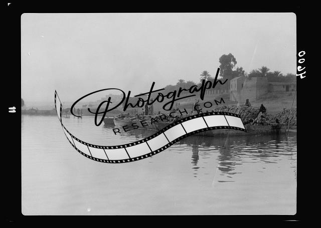 Title: Iraq. (Mesopotamia). Baghdad. River scenes on the Tigris. Melon barges. Along the Tigris banks. Fruit being unloaded and carried off by donkeys