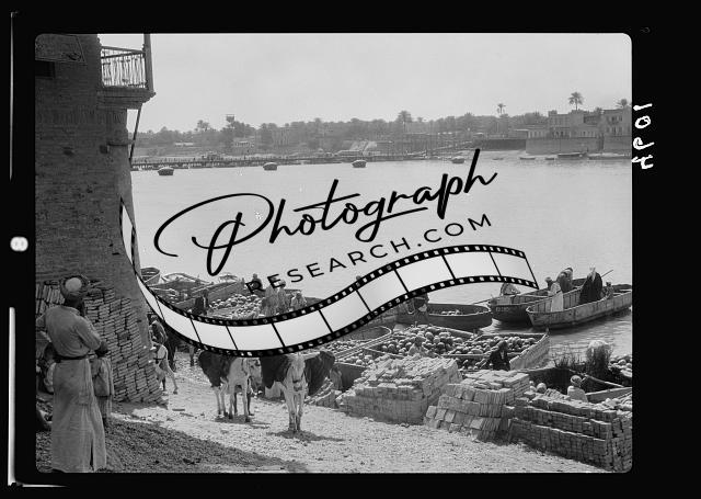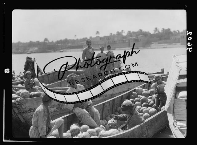 Title: Iraq. (Mesopotamia). Baghdad. River scenes on the Tigris. Landing fuel from upstream