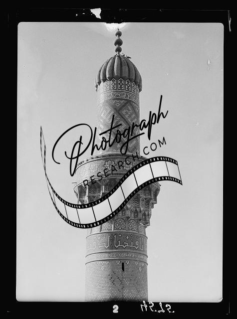 Title: Iraq. (Mesopotamia). Baghdad. Views, street scenes, and types. Jamieh Sheikh Abel-Kadir el-Killani. Mosque with beautiful minaret