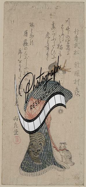 Gyoja Busho,Shunman Kubo,Photo of Ukiyo-e,Japan,Kimono,Tiger,Playing,Cat,c1810