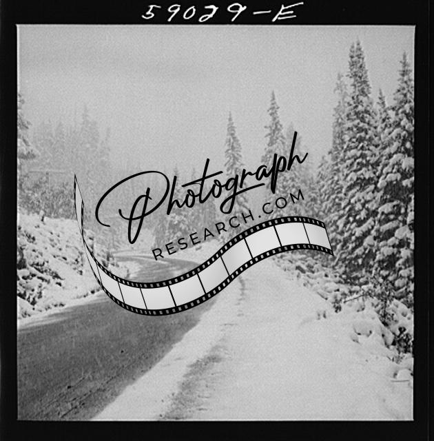 Title: Highway across mountains near Bailey, Colorado, after early fall blizzard