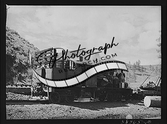 Title: Logs on flatcar which will take them into town from mountain logging camp. The lumbering industry in the eastern part of the state was developed later than that in the western parts of the state but has gathered great speed. Income from forest products in Oregon is about 177,000,000 dollars annually with about 40,000 persons being employed, receiving about fifty-six million dollars in wages and salaries annually. Baker County, Oregon