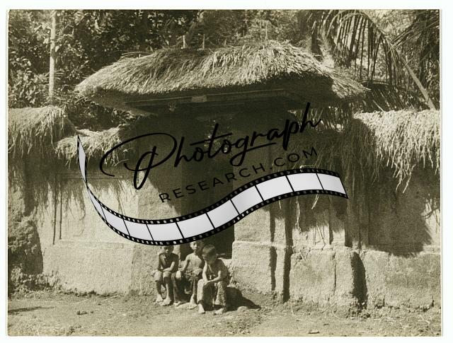 Balinese children sit at the entrance gate to a family compound