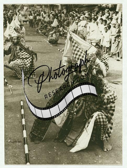 Dancers of baris gedé, a ritual war dance, dressed in magic black and white cloth