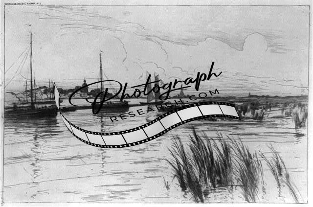 Holland dykes,Netherlands,Boats iin water,town in distance,c1889,Twatchmann