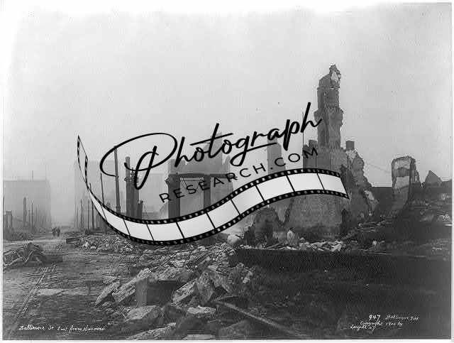 After the Baltimore Fire,Maryland,1904,ruins of structures,debris,disaster,men