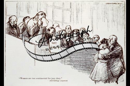 'Women are too sentimental for jury duty',1915,jury of men crying,not guilty