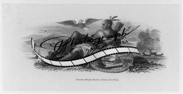 Bank note vignette,Indian,emblem,Enterprise,deer,river,eagle,Rawdon,Wright,1852