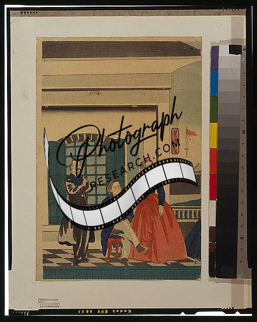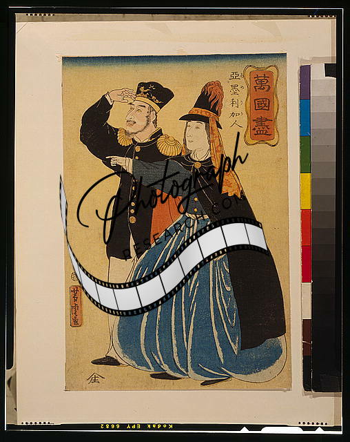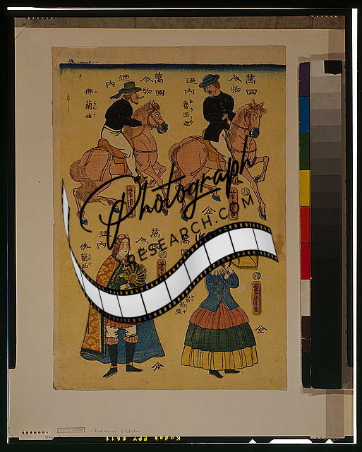Bankoku zukushi,Igirisujin,1860,woman on horseback,man smoking cigarette,1860