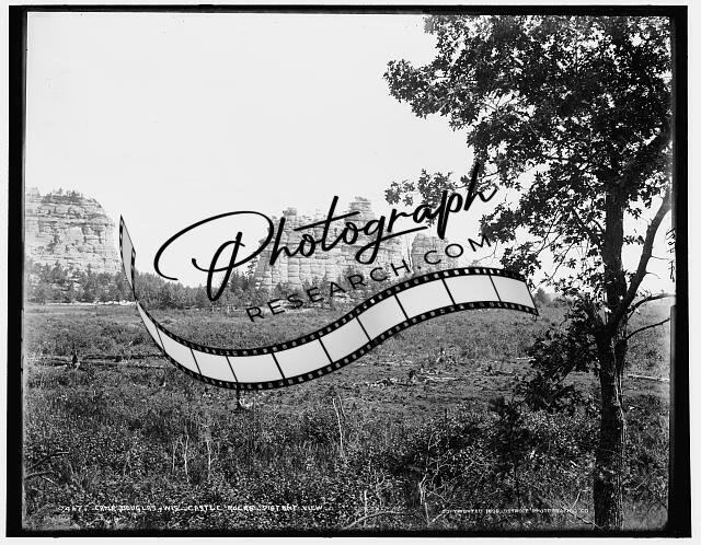 Castle Rocks,distant view,rock formations,cliffs,Camp Douglas,Wisconsin,WI,1880