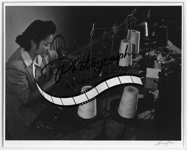 Sumiko Shigematsu at power machine, Manzanar Relocation Center, California