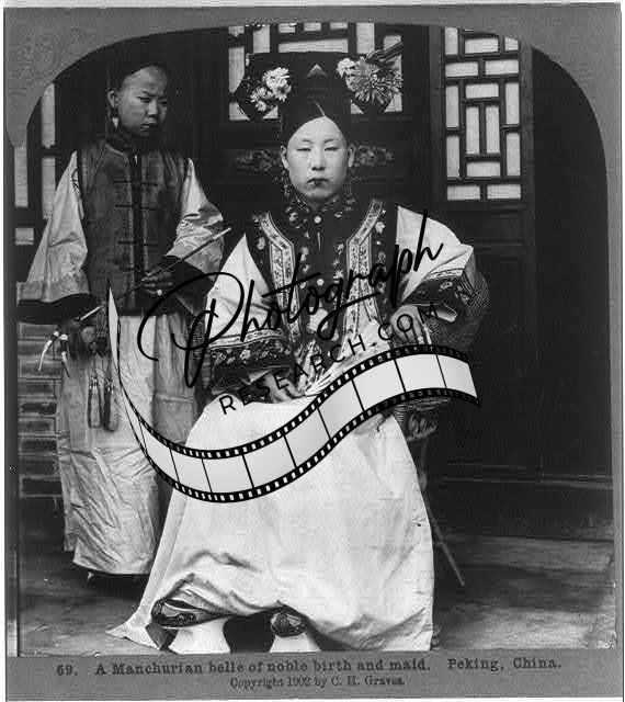 Manchurian Belle of Noble Birth & Maid,Women,Peking,China,c1902,Society