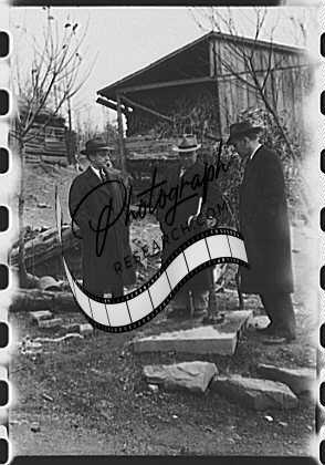 Title: Dr. R.B. Fulks, county health officer, John E. Hale, contractor and builder of sanitary units, and B.H. Pitt, inspector of sanitary units, making a sanitation inspection on the farm of Hobert Hammons, FSA (Farm Security Administration) borrower. Southern Appalachian Project, near Barbourville, Knox County, Kentucky