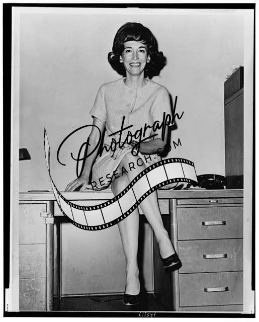 Helen Gurley Brown,sitting on a desk,1964,American Author,Publisher,Smiling