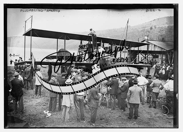 Assembling AMERICA plane,airplane,automobile,crowd gathered,aviation,1910-1915