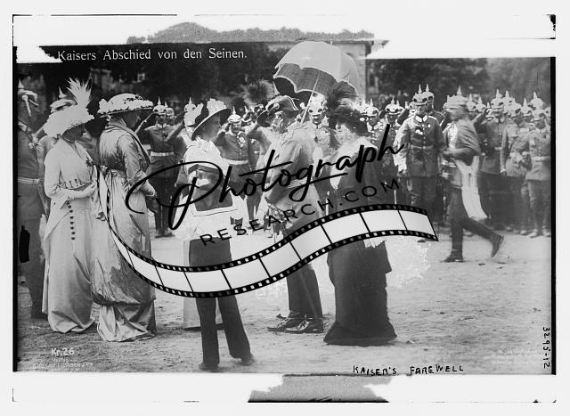 Kaiser's Farewell,women,umbrella,child,men,uniforms,Bain News Service