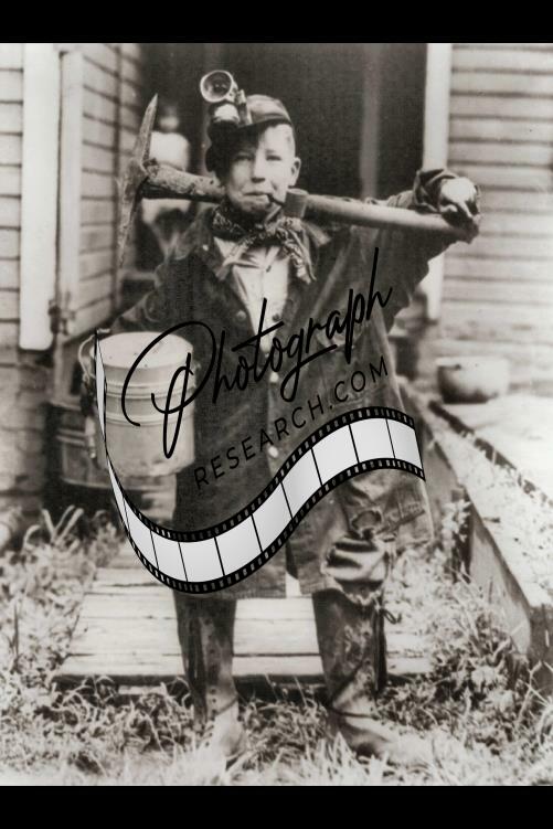 Youthful Gold Digger,Clarksburg,WV,Bill Scott,boy,pipe,headlight,pick axe,1900's