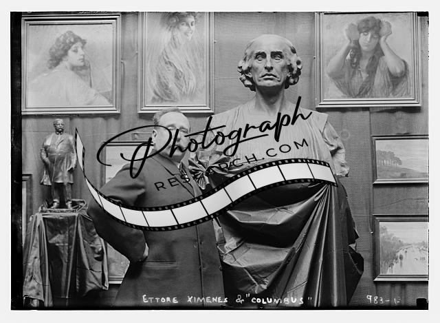 Ettore Ximenes,1855-1926,with his Columbus statue in studio,Italian sculptor