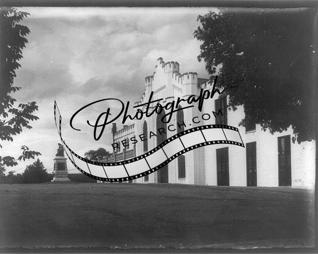 Front of barracks and statue of Virginia mourning her dead, V.M.I., Lexington, Va.