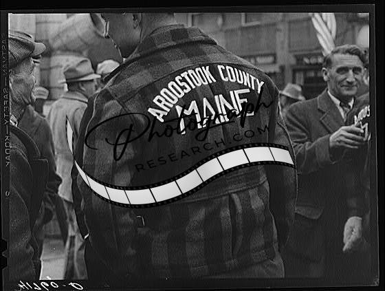 Title: Jackets worn by champions of previous barrel rolling contest on the day of the contest in Presque Isle, Maine