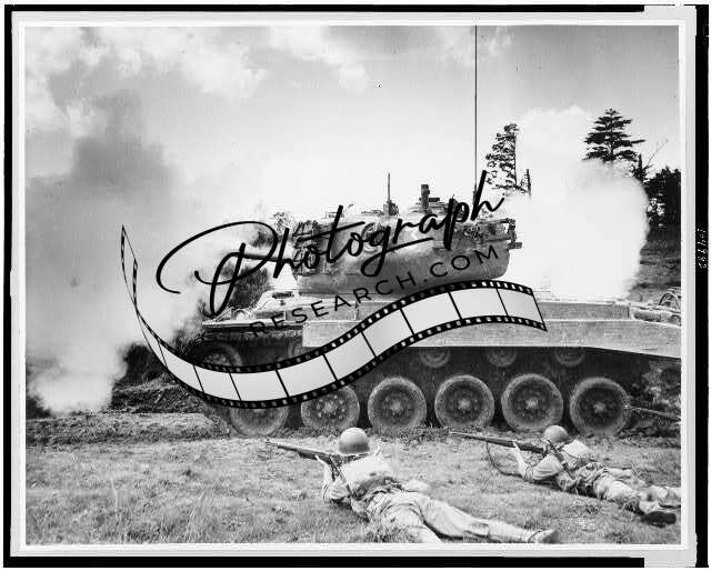 Tanks,troops,Marine training exercises,shooting,military,Quantico,Virginia,1949