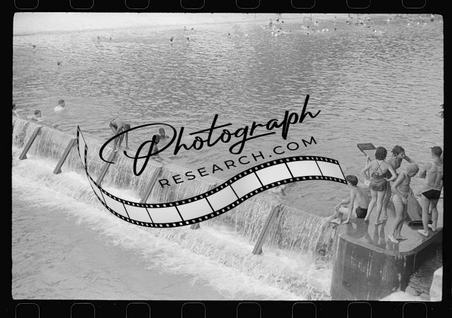 Swimming pool created by CCC dam,Huntingdon,Pennsylvania,PA,1941,Rosskam,FSA,2