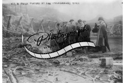 Baseball Parks,NY,Philadelphia players at site of fire,Polo Grounds,NYC,1911