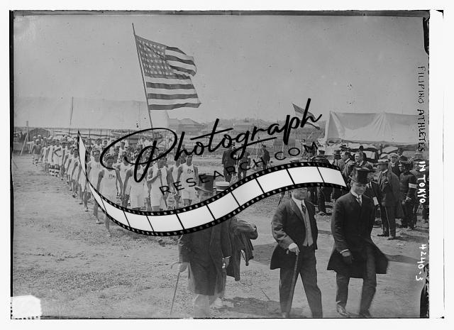 Filipino Athletes in Tokyo,Japan,American flag,Bain News Service
