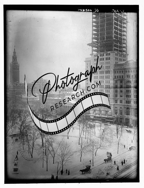 Madison Square,Manhattan,New York City,NYC,horse-drawn carriages,snow 1