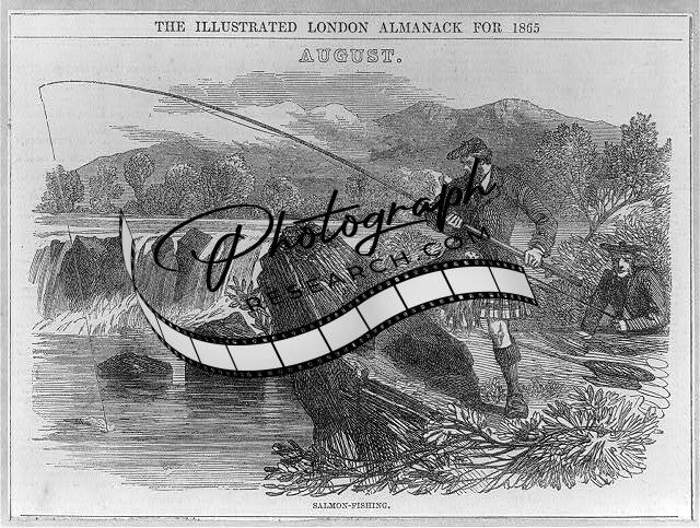 Bass Fishing,2 men in a boat,long fishing pole,1854