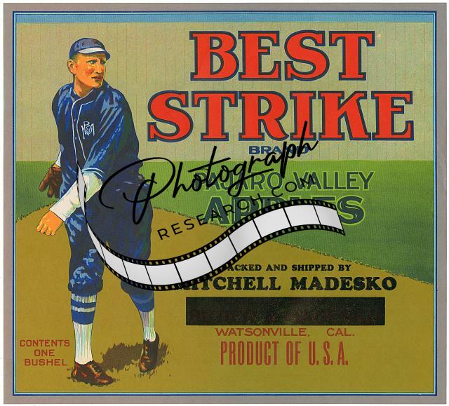 Best Strike Brand Pajaro Valley apples,packed,shipped,Mitchell Madesko,CA,1930