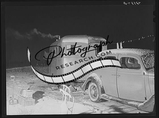 Title: Trailer parked near service station. Bath, Maine