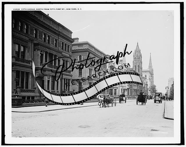 Fifth Avenue,North,Fifty-first Street,roads,buildings,carriages,New York,NY,1900