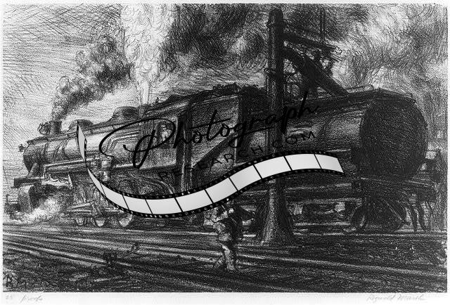 Erie locomotive watering, Marsh, Reginald, 1898-1954, artist