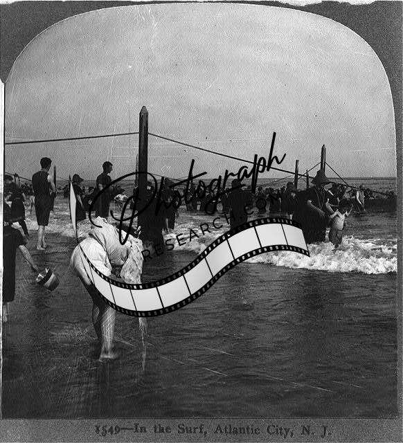 In the Surf,Atlantic City,New Jersey,NJ,Group of Bathers,Bathing Suits,1906,Swim