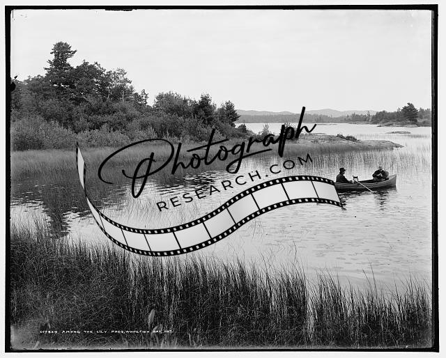 Among lily pads,fishing,canoes,Whitefish Bay,Detroit Publishing Company,1900