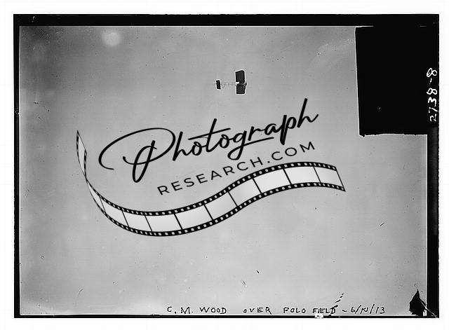 Clyde Murvin Wood,airplane of aviator flying over polo tournament,June 10,1913